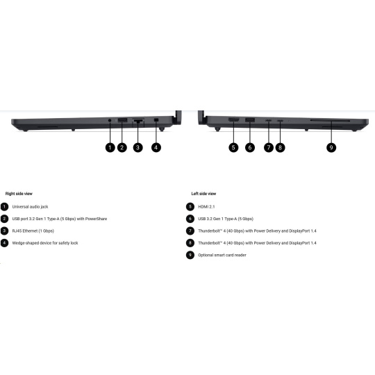 | 4 cell, 72Whr, ExpressCharge™ Capable, standard battery, 100W AC adapter, USB Type C |