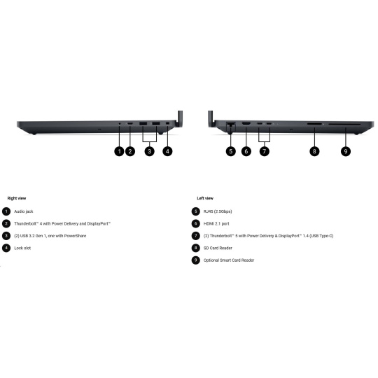 | 6 cell, 96Whr, ExpressCharge™ Capable, standard battery, 280W AC adapter, USB Type C |