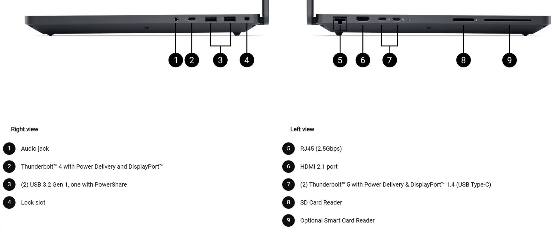 | 6 cell, 96Whr, ExpressCharge™ Capable, standard battery, 280W AC adapter, USB Type C |
