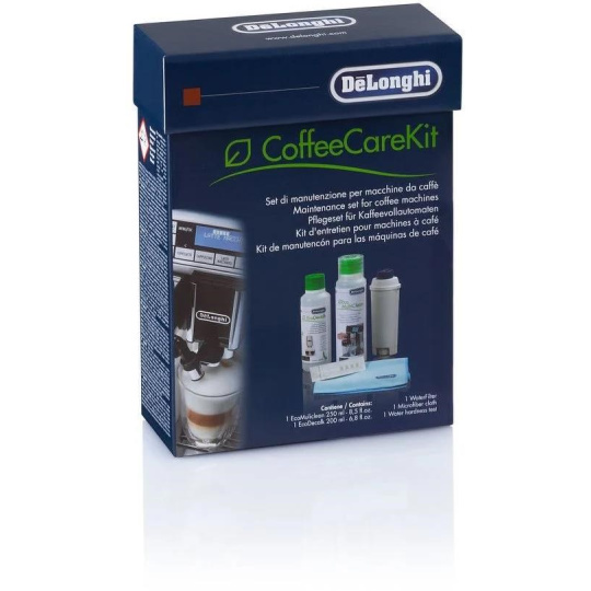 Sada De'Longhi DLSC306 je nevyhnutná na udržiavanie kávovaru v perfektnom stave a na rovnakú chuť a vôňu kávy. Sada od značky De'Longhi je ideálna na čistenie espressa a kávovarov. Súčasťou sady DLSC306 je 200 ml prípravku EcoDecalk, ktorý vydrží na 2 odvápnenia, čistič Eco MultiClean 250 ml, s overením tvrdosti vody vám pomôže testovací prúžok, prípadne vám s tvrdosťou vody pomôže filter, ktorý je tiež súčasťou. Pre praktické využitie je v sade pripojená aj utierka z mikrovlákna.