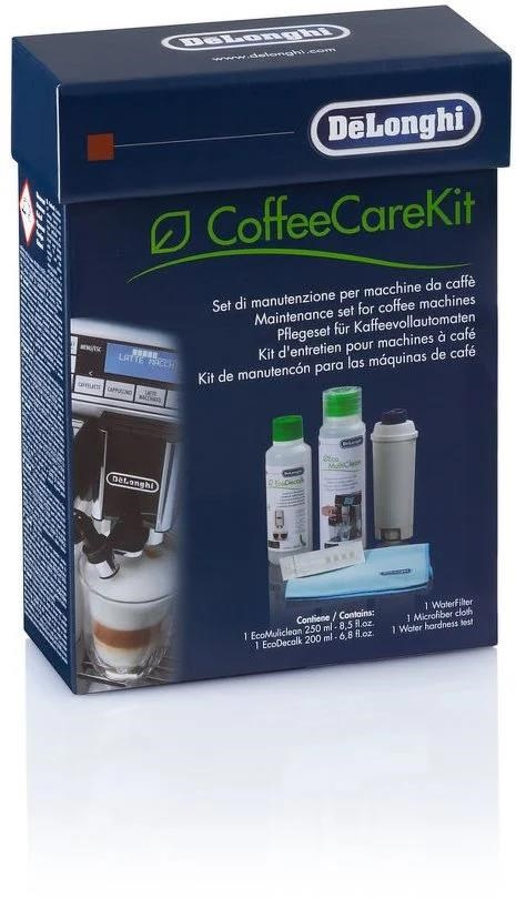 Sada De'Longhi DLSC306 je nevyhnutná na udržiavanie kávovaru v perfektnom stave a na rovnakú chuť a vôňu kávy. Sada od značky De'Longhi je ideálna na čistenie espressa a kávovarov. Súčasťou sady DLSC306 je 200 ml prípravku EcoDecalk, ktorý vydrží na 2 odvápnenia, čistič Eco MultiClean 250 ml, s overením tvrdosti vody vám pomôže testovací prúžok, prípadne vám s tvrdosťou vody pomôže filter, ktorý je tiež súčasťou. Pre praktické využitie je v sade pripojená aj utierka z mikrovlákna.