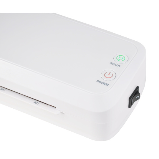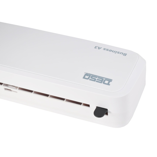 Profesionálny A3 laminátor v elegantnom Business Classy dizajne, ideálny pre kancelárske použitie. ? Pripravený na použitie za len 60 sekúnd ? Laminuje dokumenty a fotografie v kapsách 75/125 mikrónov ? Uvoľňovacia páčka – umožňuje ľahké vybratie alebo zarovnanie dokumentov ? Automatické vypnutie po 30 minútach – úspora energie ? Nie je potrebný ochranný obal (carrier) – jednoduché laminovanie s dokonalým výsledkom Perfektné pre laminovanie: ?? Prezentácií a reklamných materiálov ?? Navigačných a výstražných tabúľ ?? Fotografií a certifikátov ?? Kreatívnych a kancelárskych dokumentov Všetky laminátory DESQ sú rýchle a pripravené na použitie behom okamihu.