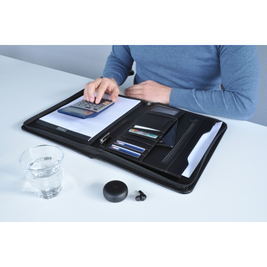 Táto konferenčná taška Business Classy je ručne vyrobená z vysoko kvalitnej syntetickej kože v minimalistickom dizajne. ? 13 priečinkov a priehradok – ideálne pre perá, vizitky a dokumenty ? Špeciálna kapsa na tablet (lze použiť aj na dokumenty formátu A4) ? Uzatvárateľná kapsa na zips pre bezpečné uloženie cenností ? 8 slotov na karty ? Skrytá kapsa na diskrétne uloženie dokumentov ? Obsahuje poznámkový blok A4 (20 listov) Business Classy konferenčné tašky spájajú praktickú funkčnosť s luxusným minimalistickým dizajnom, čo zabezpečuje profesionálny a elegantný vzhľad pri každej príležitosti. Vnútorné usporiadanie je dôkladne navrhnuté tak, aby boli všetky vaše dokumenty prehľadne usporiadané na stretnutia a rokovania. Celoplošné uzatvorenie na zips poskytuje maximálnu bezpečnosť, takže si tašku môžete vziať kamkoľvek bez rizika straty dôležitých materiálov.