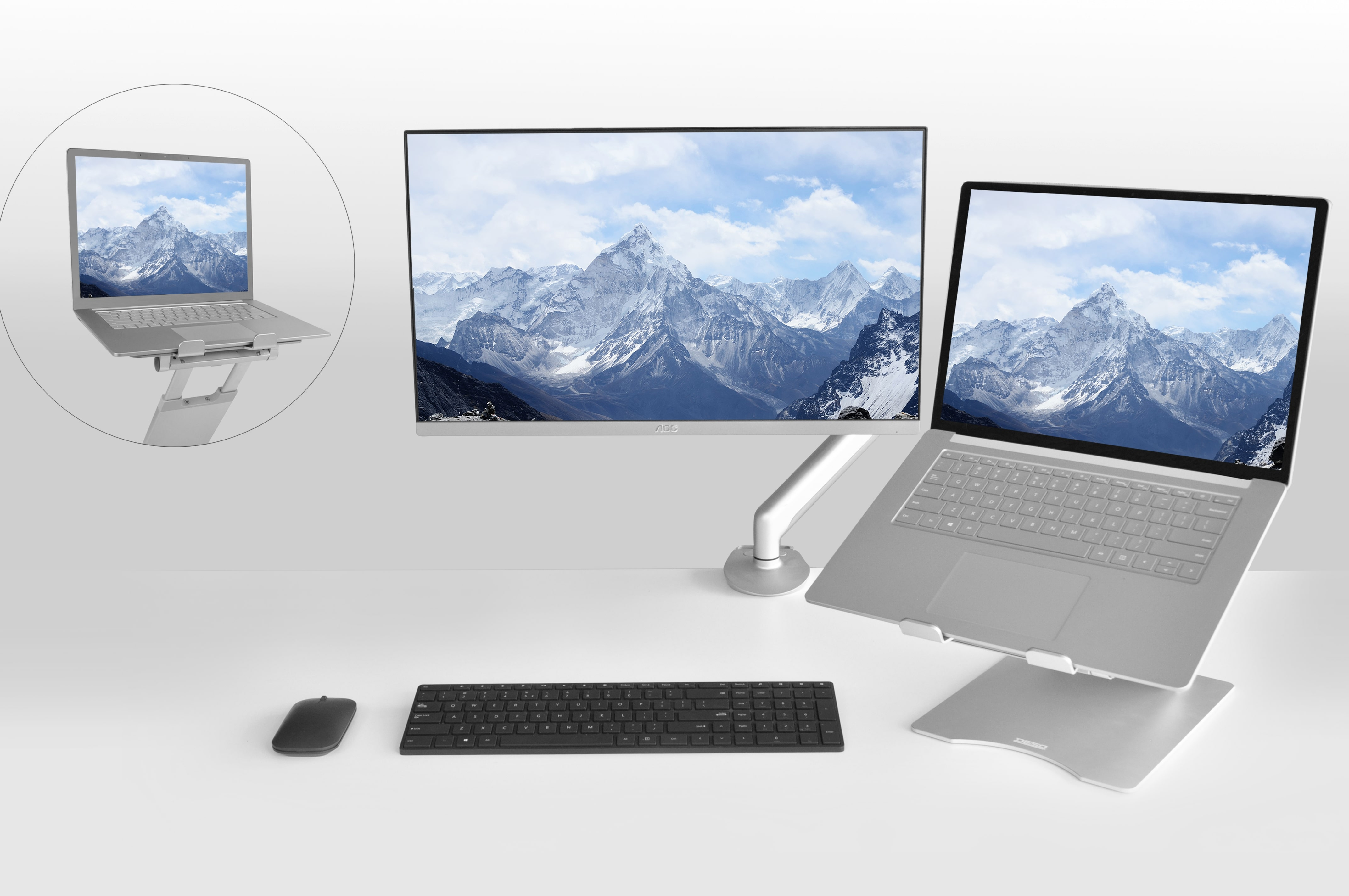 Tento plne nastaviteľný stojan na notebook vám umožní umiestniť obrazovku do úrovne očí, či už sedíte, stojíte alebo sa nachádzate medzi týmito polohami. Je ideálny na zabezpečenie ergonomicky správneho držania tela pri práci, ako rečnícky pult pri prezentáciách alebo dokonca ako stojan na kuchárku pri varení. ? Plne nastaviteľný jediným tlačidlom: ľahká úprava výšky od 30 do 450 mm ? Zdvihá obrazovku až o 45 cm pre optimálny komfort sledovania ? Platforma nastaviteľná až do uhla 70 ° pre najlepší pozorovací uhol ? Výrezy v konštrukcii podporujú prúdenie vzduchu a ochladzujú notebook ? Vyrobený z pevnej a odolnej hliníkovej zliatiny ? Silikónové podložky a nôžky pre stabilitu a ochranu proti sklzu S DESQ stojanom na notebook nastavíte displej do ideálnej výšky, čo podporuje zdravé a ergonomické držanie tela a pomáha predchádzať bolesti chrbta, krku a únave očí.