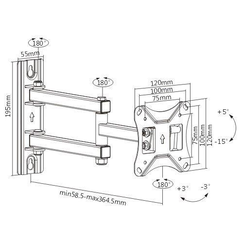 Držiak na monitory a TV Fiber Mounts FM233 Kvalitný držiak na monitor alebo TV 13-30", otáčateľný +/-90°, sklopný +5°/-15°, vysúvateľný 58-365mm, VESA 75x75 a 100x100, nosnosť 15kg, záruka 5 rokov Kvalitný polohovací držiak na monitor alebo televíziu s uhlopriečkou 13" až 30", ktorý unesie záťaž až 15kg a podporuje VESA štandardy 75x75 a 100x100. Tento nástenný držiak je vysúvateľný 58-365mm, otáčať do strán až +/- 90°, ale aj naklápať dole alebo hore +5°/ -15°. Ak sa Vám nepodarí držiak nainštalovať presne do roviny, ľahko svoj omyl napravíte - držiak umožňuje korekciu roviny obrazovky +/-3°. V balení nájdete inštalačný materiál, držiak a prehľadný návod v češtine. Držiak na TV alebo monitor Fiber Mounts FM233 Technické údaje: nosnosť 15kg podpora VESA štandardu 75x75 a 100x100 držiak je ideálny na monitor alebo televízor s uhlopriečkou 13" až 30" spoľahlivá a bezpečná konštrukcia s polohovaním otáčanie na obe strany +/- 90° náklon obrazovky nadol až o -15°, nahor až o +5° korekcia roviny obrazovky +/- 3° výsuvný - nastavenie požadovanej vzdialenosti od steny v rozmedzí 58mm až 365mm kvalitný držiak monitora alebo menšej TV za dostupnú cenu farebné prevedenie čierne inštalačný materiál, prehľadný návod v CZ záruka 5 rokov Nástenný držiak na televízor alebo monitor Fiber Mounts FM233 Držiaky na monitory a TV Fiber Mounts FM233 podporujú VESA štandardy: VESA 75x75 VESA 100x100 Na nástenný držiak Fiber Mounts FM233 je možné zavesiť všetky typy a značky monitorov a televízorov, ktorých hmotnosť je maximálne 15kg a ktoré podporujú niektorý z vyššie uvedených VESA štandardov. Na veľkosti (uhlopriečke) monitoru alebo televízora nezáleží. Ak potrebujete obrazovku otočiť kolmo k stene, tak nesmie šírka televízie prekročiť 65cm
