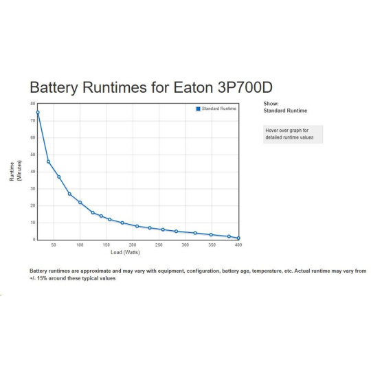 | Graf behu programu | ParametrePridať do porovnania Topologie Off-Line Provedení Tower Eaton 3P Ellipse UPS DIN, 700 VA, 420 W, Vstup: C14, Výstupy: (3) Typ E, (1) Pouze přepěťová ochrana Typ E, TowerNaposledy navštívené |