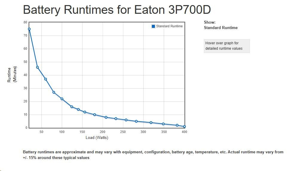 | Graf behu programu | ParametrePridať do porovnania Topologie Off-Line Provedení Tower Eaton 3P Ellipse UPS DIN, 700 VA, 420 W, Vstup: C14, Výstupy: (3) Typ E, (1) Pouze přepěťová ochrana Typ E, TowerNaposledy navštívené |