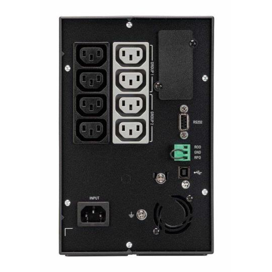 Komunikačné porty: 1 USB port + 1 RS232 sériový port (nemôžu byť použité súčasne), mini svorkovnica pre vzdialené zapnutie a vypnutie a pre vzdialené odstavenie (RPO)