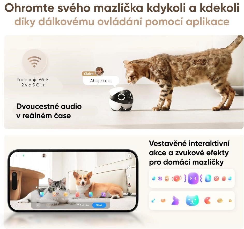 - Všestranné využitie – skvelý na zábavu domácich miláčikov, komunikáciu s deťmi aj ako mobilná domác? kamera.