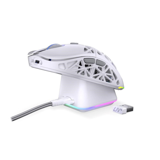 Ultralšia a veľmi presná bezdrôtová herná myš LIV Plus Wireless Onyx White, inšpirovaná bielym onyxom. Každá časť, od ľahkej konštrukcie so snímačom PixArt PAW3395 až po bezdrôtovú dokovaciu stanicu, bola vytvorená tak, aby zvýšila vašu výdrž a efektivitu počas dlhých herných .... Pripojte sa k svojmu počítaču, konzole, telefónu alebo televízoru a jednoducho vyhrajte všetko - bez námahy.