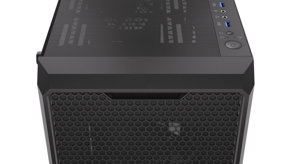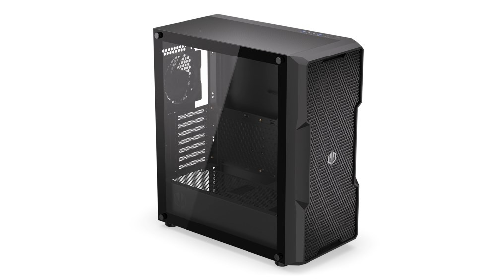 Skriňa formátu Middle Tower s priehľadnou bočnicou z tvrdeného skla ponúka dve 2,5" pozície pre SSD disky a dve 3,5" pozície pre pevné disky. Na hornej časti sa nachádza dva USB 3.0 porty, výstup na sluchátka a vstup na mikrofón. Vybavená je štyrmi 120 mm ventilátormi, ktoré spolu s perforovaným čelným panelom zabezpečujú dostatočné prúdenie vzduchu. Vo skrini je dostatok miesta pre chladič CPU do výšky až 162 mm a grafickú kartu o dĺžke až 370 mm. Dodáva sa bez zdroja. Súčasťou je tiež sada prachových filtrov.