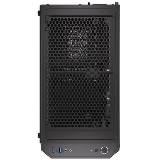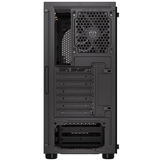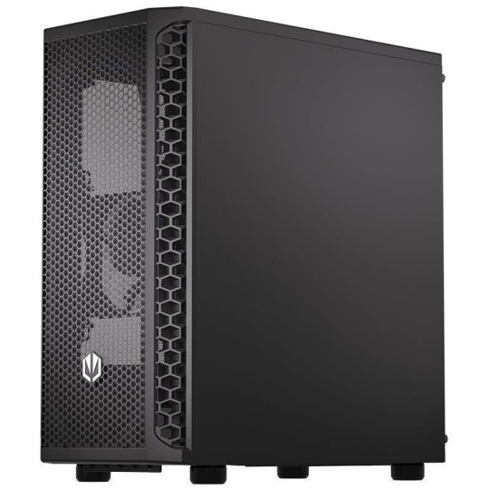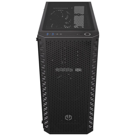 Skriňa formátu Middle Tower s priehľadnou bočnicou z tvrdeného skla ponúka dve 2,5" pozície pre SSD disky a dve 3,5" pozície pre pevné disky. Na hornej časti sa nachádza dva USB 3.0 porty, výstup na slúchadlá a vstup pre mikrofón. Vybavená je dvomi 120 mm ventilátormi, ktoré spolu s perforovaným čelným panelom zabezpečujú dostatočné prúdenie vzduchu. Dômyselné riešenie umožňuje pohodlné umiestnenie až 360 mm dlhého výmenníka vodného chladenia na prednej strane. V skrini je dostatok miesta pre chladič CPU do výšky až 161 mm a grafickú kartu s dĺžkou až 350 mm. Dodávaná je bez zdroja. Súčasťou je tiež sada prašných filtrov.