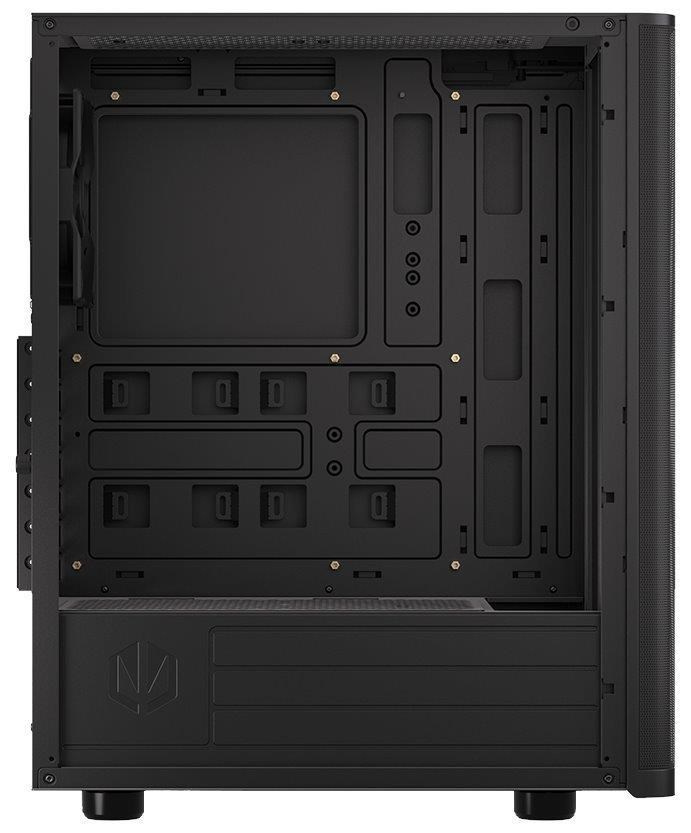Skriňa formátu Middle Tower ponúka dve 2,5" pozície pre SSD disky a jednu 3,5" pozíciu pre pevný disk. Na hornej časti sa nachádza dva USB 3.0 porty, výstup na slúchadlá a vstup pre mikrofón. Je vybavená jedným 120 mm ventilátorom, ktorý spolu s perforovaným predným panelom zabezpečuje dostatočné prúdenie vzduchu. Šikovné riešenie umožňuje pohodlné umiestnenie až 360 mm dlhého výmenníka vodného chladenia na prednej strane. Vo skrini je dostatok miesta pre chladič CPU do výšky až 161 mm a grafickú kartu dlhú až 315 mm. Dodáva sa bez zdroja. Súčasťou je tiež sada prachových filtrov.