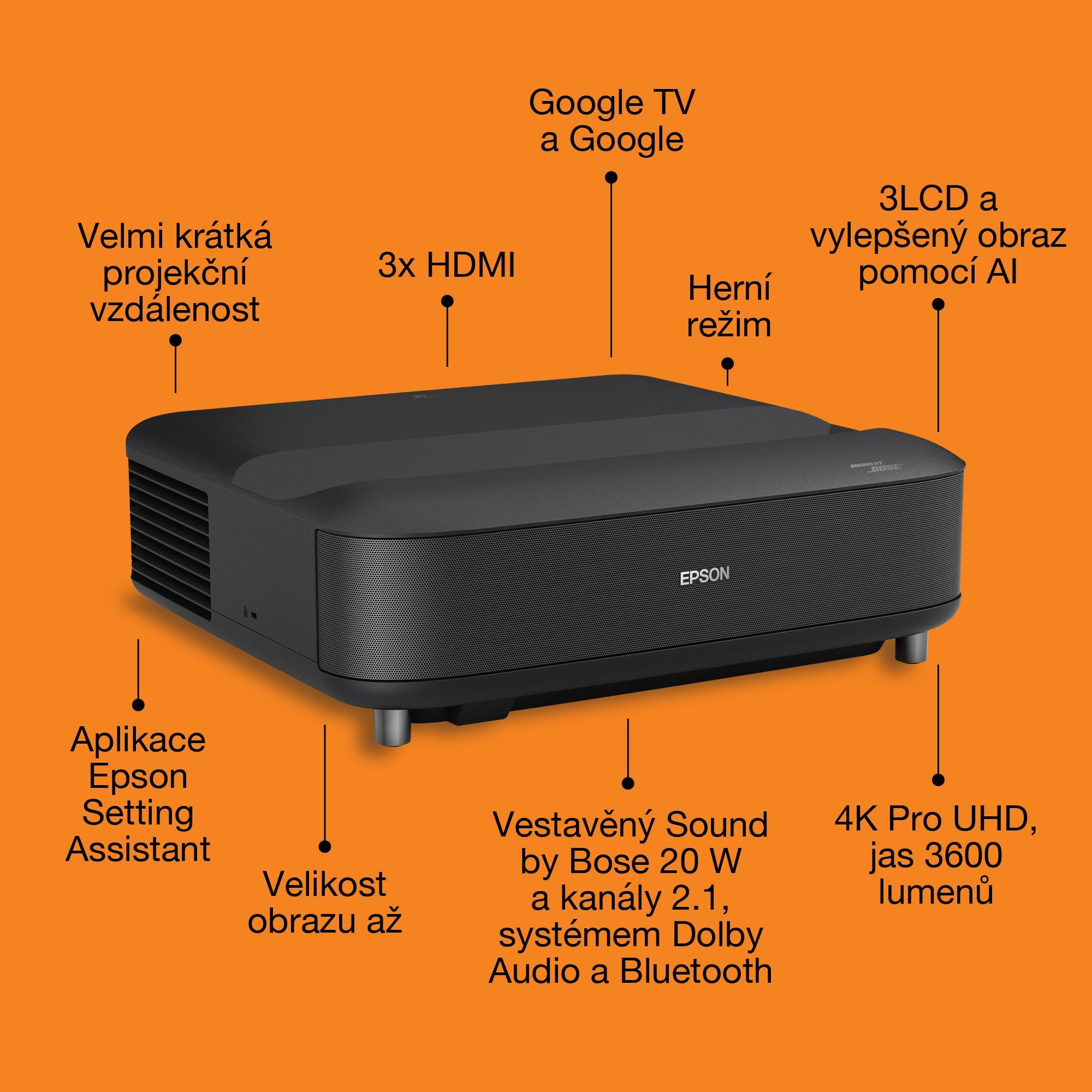 Epson Lifestudio Grand – EH-LS670B metalická čierna, 4K PRO-UHD, 3600lm, HDMI, USB, Google TV, 240Hz