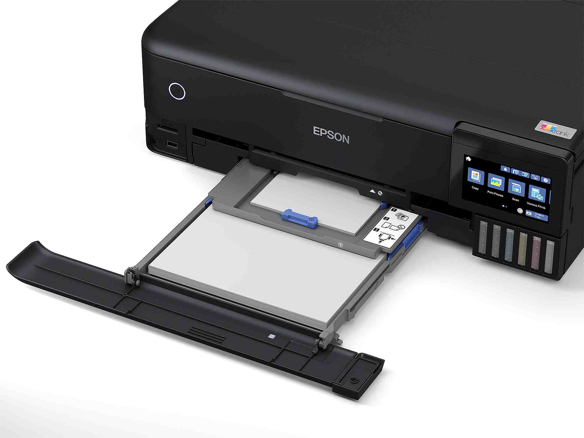 Objevte nepoznanou kreativitu s úžasnými fotografiemi a dokumenty formátu A3+ a neuvěřitelně nízkými náklady na stránku. Pomocí působivé barevné dotykové obrazovky s úhlopříčkou 10,9 cm, 5 způsobů podávání médií a inovativního šestibarevného inkoustového systému můžete tisknout, kopírovat a skenovat naprosto snadno. Jedná se o perfektní tiskárnu pro každou umělecky založenou moderní rodinu. Není potřeba vyměňovat žádné inkoustové kazety a tiskárna disponuje flexibilními možnostmi připojení.