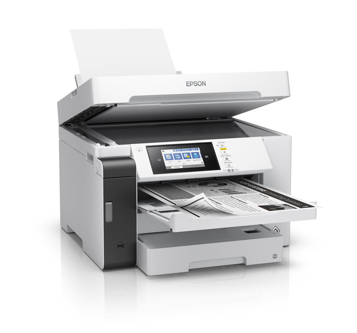 Toto ľahko použiteľné zariadenie EcoTank Pro Wi-Fi umožňuje tlačiť, skenovať a kopírovať dokumenty s výnimočne nízkymi nákladmi na tlač a nízkou spotrebou energie vďaka technológii Heat-Free. Vysokorýchlostná tlač a skenovanie formátu A3 a A4 šetrí čas. Pomocou technológie Open Platform je možné ľahko integrovať celý rad softvérových riešení do existujúcej IT infraštruktúry a zvýšiť tak efektivitu.