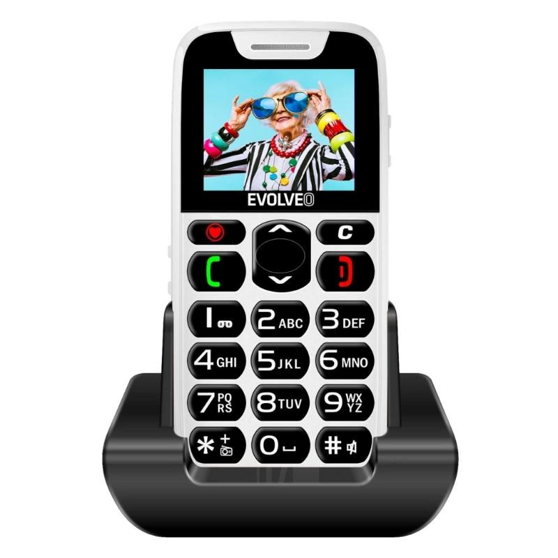 EVOLVEO EasyPhone, mobilní telefon pro seniory s nabíjecím stojánkem, bílá