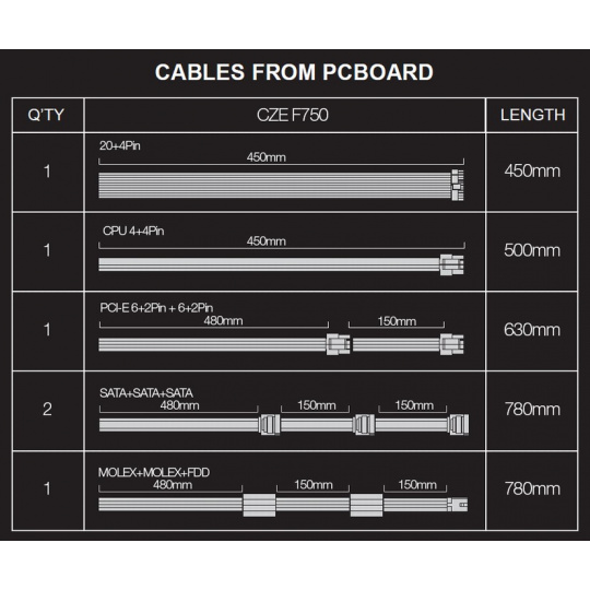 - CPU 4+4 pin (500 mm)