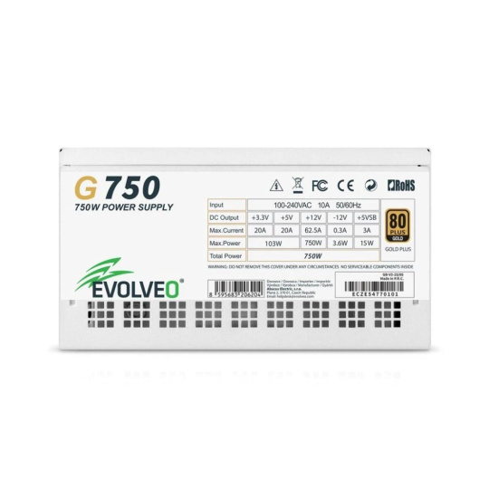 EVOLVEO G750 zdroj 750W, 80+ GOLD, ATX 3.1, aPFC, 140 mm ventilátor, záruka 3 roky, bílý