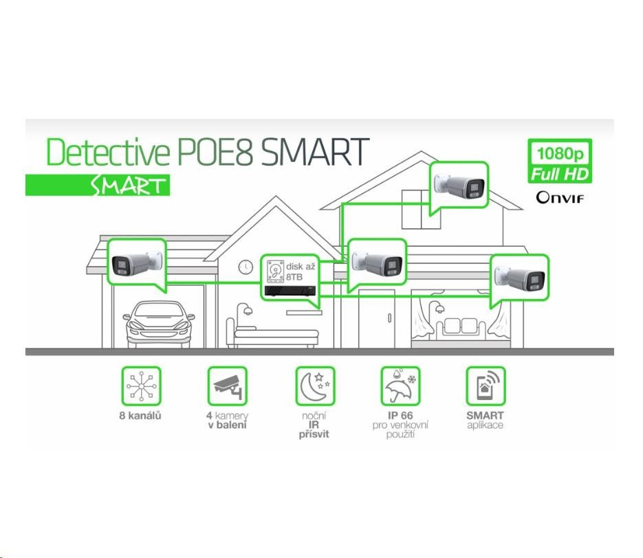 EVOLVEO kamerový systém Detective POE8 SMART, 4 kamery