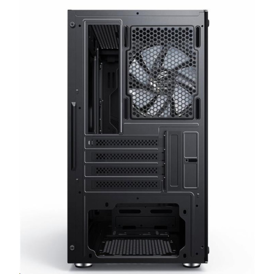 Herné mATX skrinka s inštalovanými RGB rainbow 120 mm ventilátormi a bočnicou z temperovaného skla. Skrinka je určená pre základné dosky podporujúce platformu Intel aj AMD. Okrem formátu mATX je kompatibilná aj s formátom Mini ITX. Zdroj je umiestnený v spodnej časti skrinky. Spodná mriežka je osadená vysúvacím prachovým filtrom. Ovládanie ventilátorov je možné pomocou pripojenia ku základnej doske.