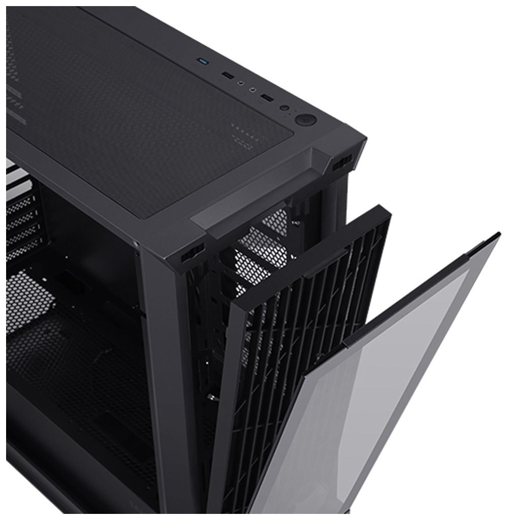 Počítačová skriňa - ATX, mATX (Micro ATX) a mITX (mini ITX), voliteľný predný panel, balenie obsahuje sklenený predný panel (temperované sklo) a predný panel s mriežkou, 2x 3,5", 3x 2,5", 2x USB 2.0, 1x USB 3.0, vstup na slúchadká/mikrofón, 4x 120mm ARGB ventilátor, chladič CPU 164mm, grafická karta 280/390mm (390mm pri demontáži HDD rámečka), bez zdroja, bočnice temperované sklo