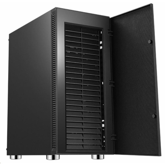Odhlučnená ATX midi veža. Skrinka je určená pre základné dosky podporujúce platformu Intel aj AMD. Okrem formátu ATX je kompatibilná aj s formátom Micro ATX a Mini ITX. Zdroj napájania sa umiestňuje do dolnej časti skrinky. Spodná mriežka je osadená vysúvacím prachovým filtrom. Súčasťou sú dve tiché ventilátory pre lepší airflow.