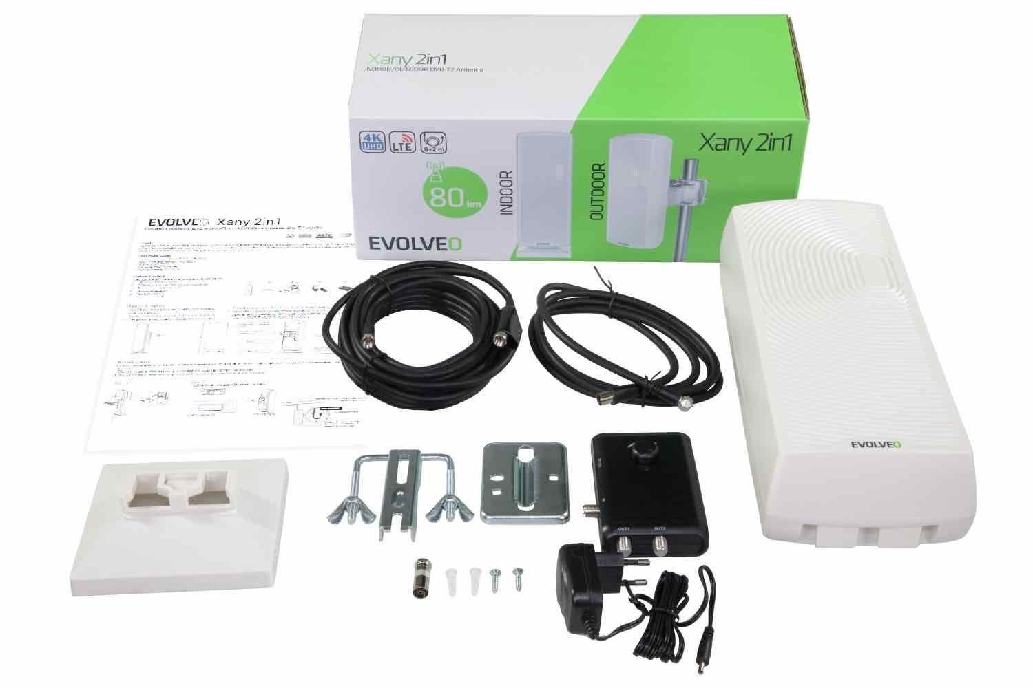 EVOLVEO Xany 2in1, aktivní venkovní/pokojová anténa FM/DAB+/DVB-T2, filtr LTE,4G,5G