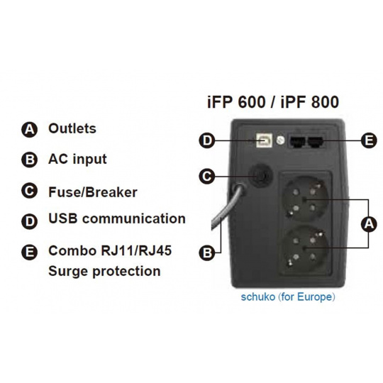 Fortron UPS FSP iFP 800, 800 VA / 480W, LCD, lineárne interaktívne