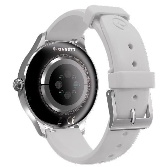 Extrémne výrazný a kontrastný AMOLED displej je jednou z kľúčových vlastností Garett Viva. Vysoká kvalita obrazu je zabezpečená živými farbami a hlbokou čiernou. Vďaka indukčnému nabíjaniu je používanie hodiniek ešte pohodlnejšie. Okrem toho ponúka Garett Viva rôzne možnosti personalizácie – rôzne štýly menu a ciferníky, z ktorých si môžete vybrať. Smart hodinky sú navyše okrem kovového remienka dodávané aj so silikónovým pásikom, ktorý bol navrhnutý ešte štíhlejší, aby na ženskom zápästí pôsobil elegantne. Hodinky tak môžu byť jedinečným doplnkom každého outfitu.