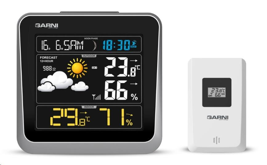 - možnost použití až 3 bezdrátových čidel GARNI 045H (jedno čidlo je součástí dodávky)