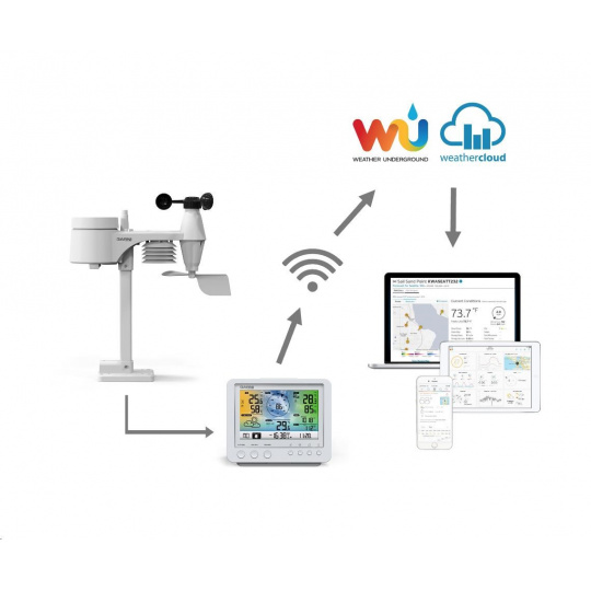 - možnost připojení k internetu pomocí místní Wi-Fi sítě pro přenos dat na server webové služby Weather Underground a Weathercloud