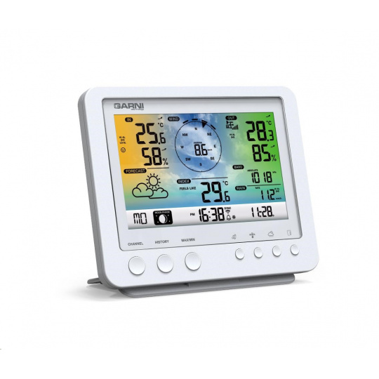 Wi-Fi meteorologická stanice s integrovaným bezdrátovým čidlem 5 v 1 model GARNI 975 je vybavena mnoha funkcemi zajišťujícími informace o předpovědi počasí. Integrované bezdrátové čidlo pracuje na frekvenci 868 MHz a měří teplotu, relativní vlhkost, rychlost a směr větru a dešťové srážky.
