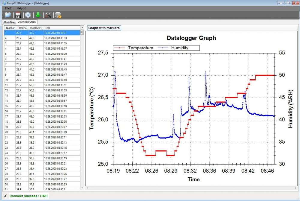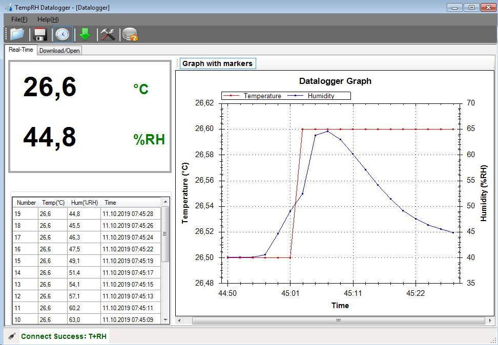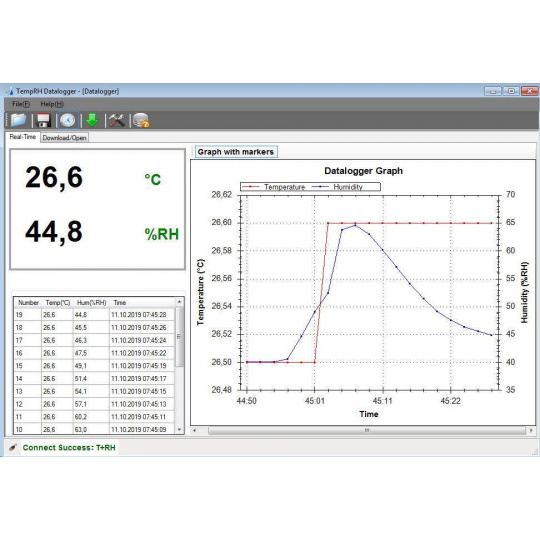 program TempRH Datalogger pro zobrazení naměřených hodnot pro OS Windows až do verze Windows 10 (32 bit a 64 bit)