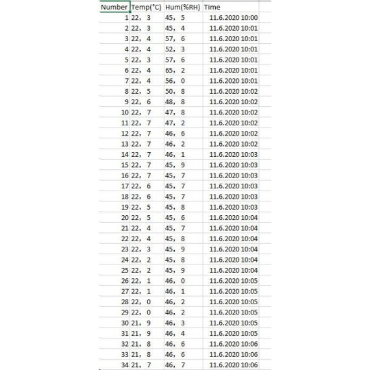 paměť pro 20 010 hodnot teploty a vlhkosti