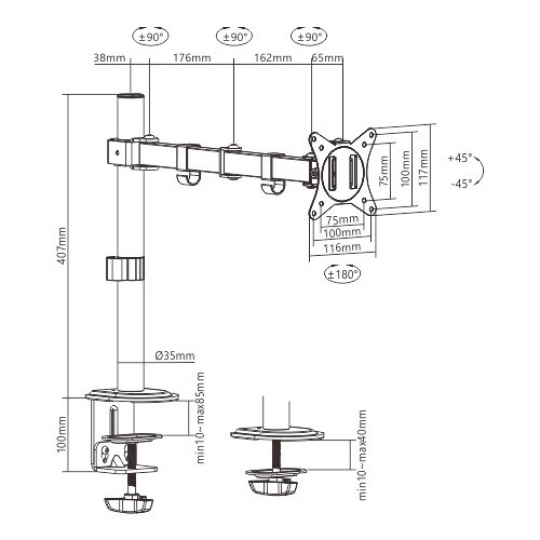 GEMBIRD Držák monitoru na stůl MA-D1-01, naklápěcí, až do 32” a 9kg, černý
