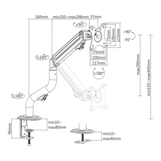 - Odolné nastaviteľné plynové pružiny vhodné pre monitory 2 - 8 kg