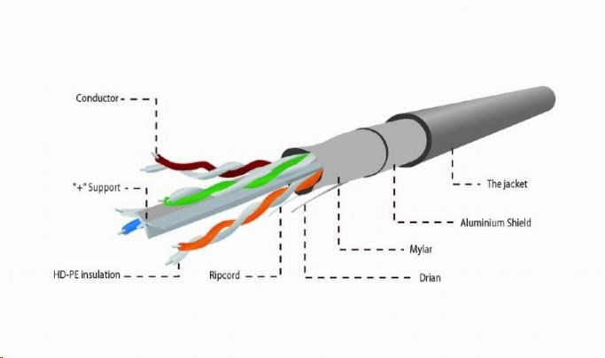 Tienený inštalačný kábel FTP LAN s plnými vodičmi