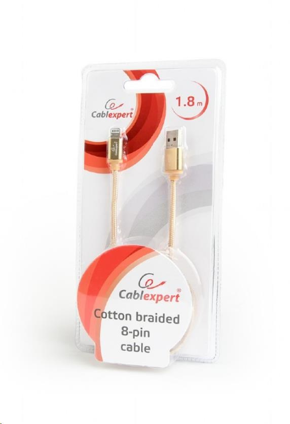 GEMBIRD CABLEXPERT USB 2.0 Nabíjací a synchronizačný kábel Lightning (IP5 a vyšší), opletený, 1,8 m, zlatý, blister