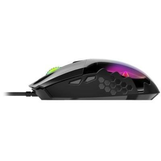 Herná myš disponujúca 6 tlačidlami a vysoko presným optickým senzorom s nastaviteľným rozlíšením v rozmedzí 800 až 7200 DPI. Ergonomický herný dizajn myši dopĺňa RGB podsvietenie s 3D efektom. Na pripojenie k počítaču slúži 1,8 m dlhý opletený kábel zakončený USB konektorom.