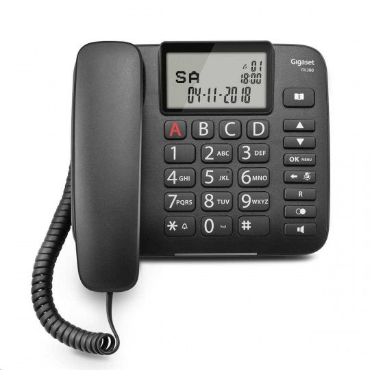 - 4 programovateľné tlačidlá priamej voľby (A-D) pre dôležité telefónne čísla
