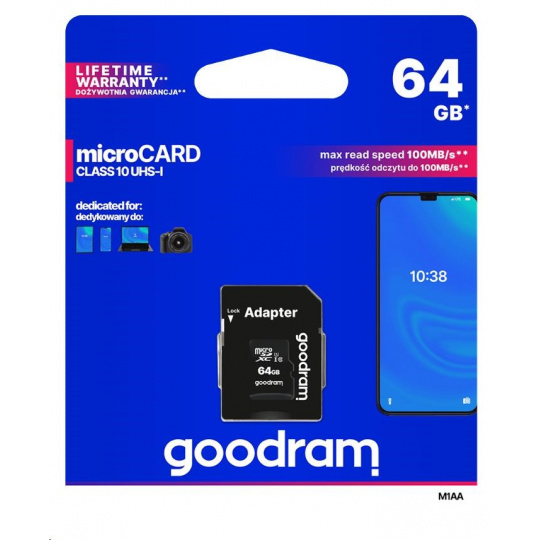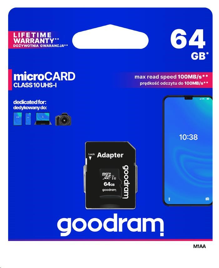 GOODRAM MicroSDXC karta 64GB M1AA, UHS-I Class 10, U1 + adaptér