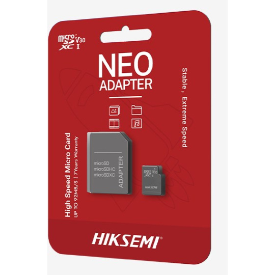 HIKSEMI MicroSDXC karta 64GB, C10, UHS-I, (R:92MB/s, W:30MB/s) + adapter