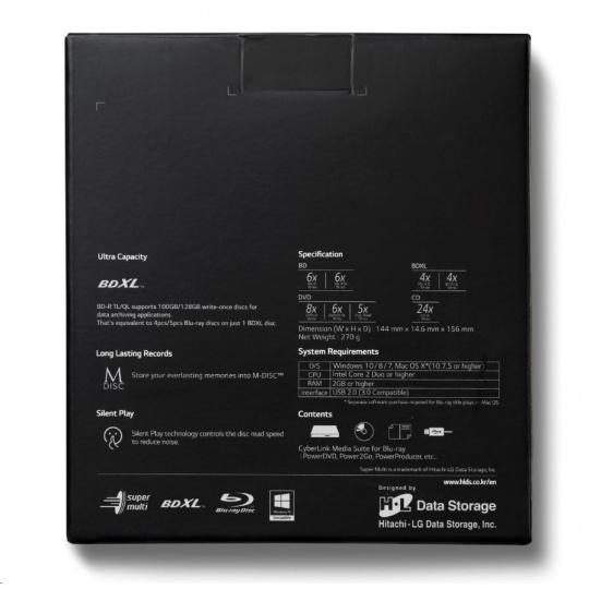 HITACHI LG - Externý disk BD-W/CD-RW/DVD±R/±RW/RAM/M-DISC BP55EB40, čierny, box+SW