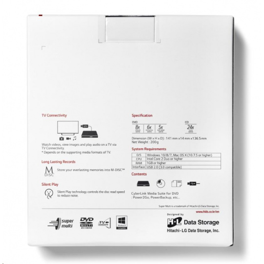 HITACHI LG - externá mechanika DVD-W/CD-RW/DVD±R/±RW/RAM GP57ES40, Slim, Silver, box+SW