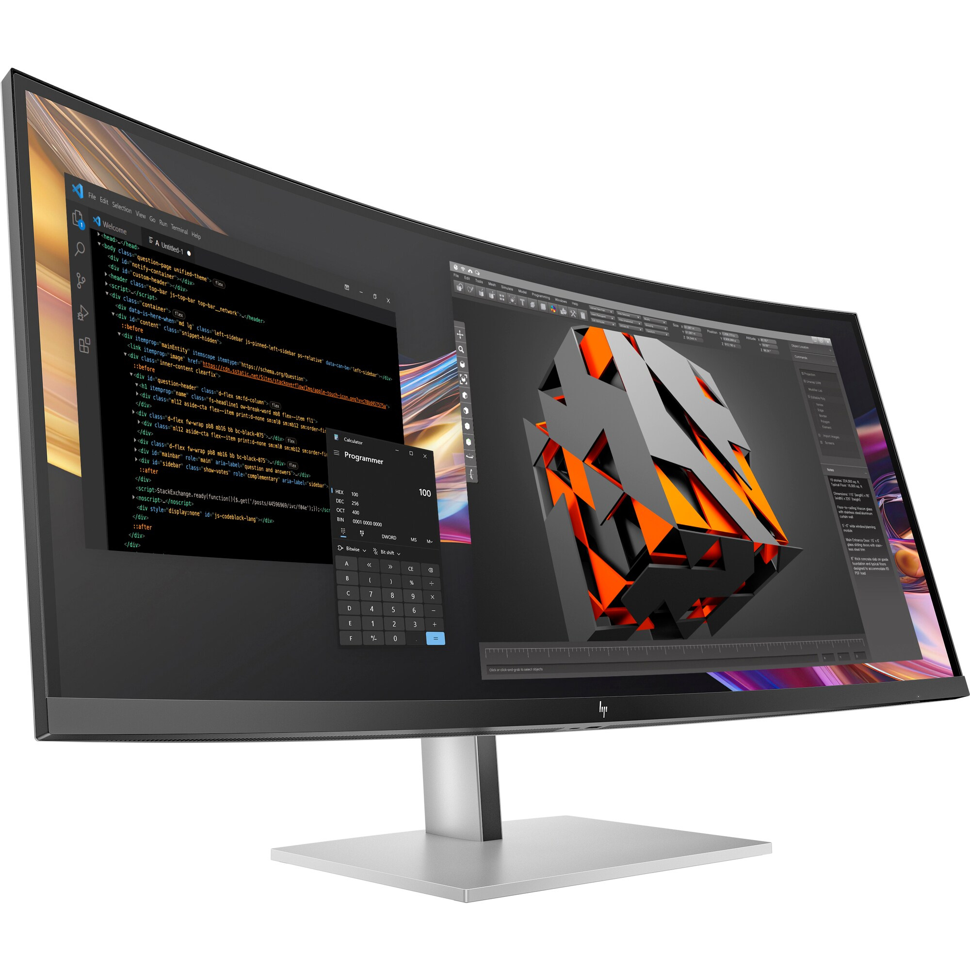 | Funkcie displeja | Zapnutie jediným tlačidlom; Integrované reproduktory; Zakrivený displej; HP Eye Ease; Čierny panel IPS; Device Bridge 2.0; Senzor okolitého osvetlenia; Prepínač KVM; Sériové zapojenie; Obraz v obraze; Obraz vedľa obrazu; Nastaviteľná výška; Nakláňanie; Otáčanie okolo vertikálnej osi; Overenie Pantone; Farby kalibrované výrobcom; Opätovná používateľská kalibrácia farieb HP |