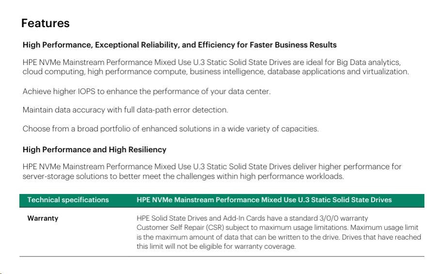 HPE 3.2TB NVMe Gen4 Mainstream Performance Mixed Use SFF BC U.3 Static V2 Multi Vendor SSD P65015-B21 RENEW.