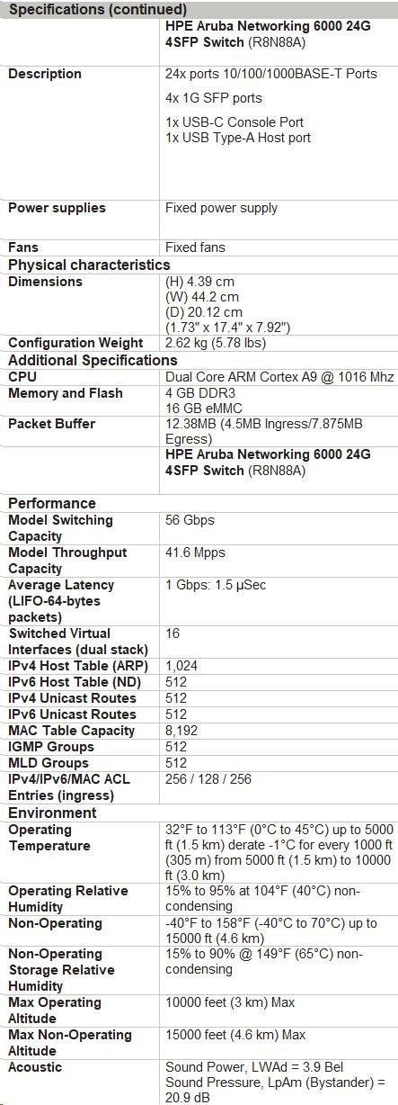Specification 6000 24G 4SFP Switch (R8N88A)