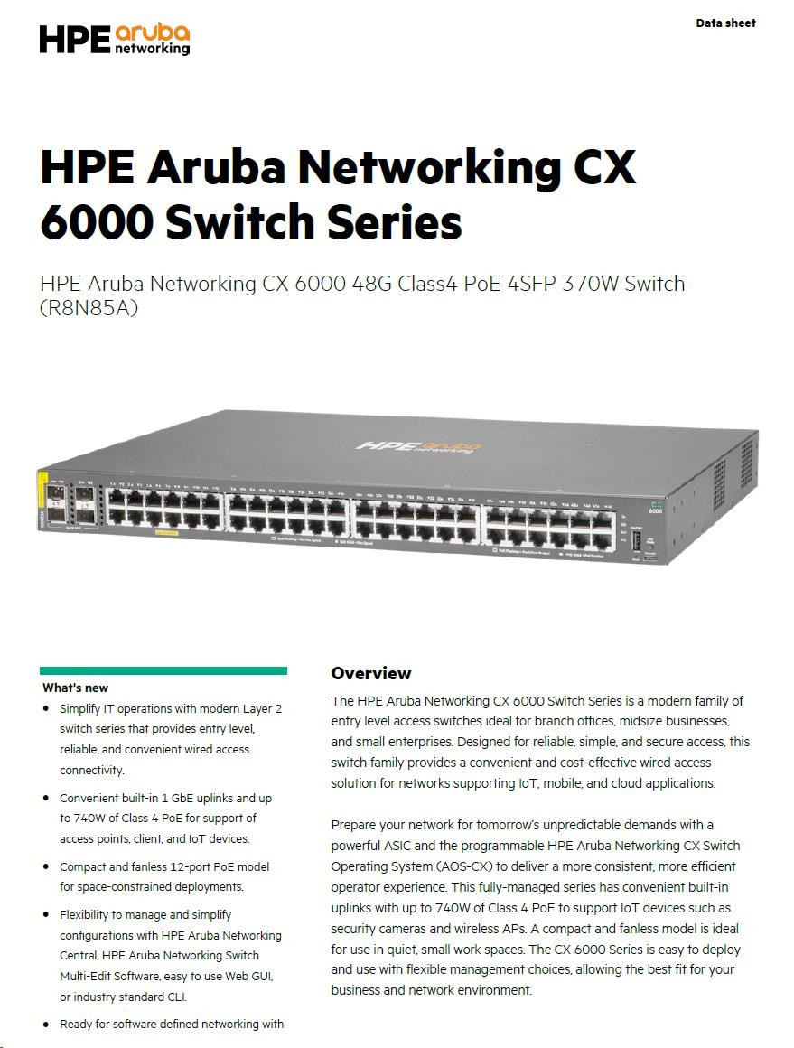HPE Aruba Networking CX 6000 48G Class4 PoE