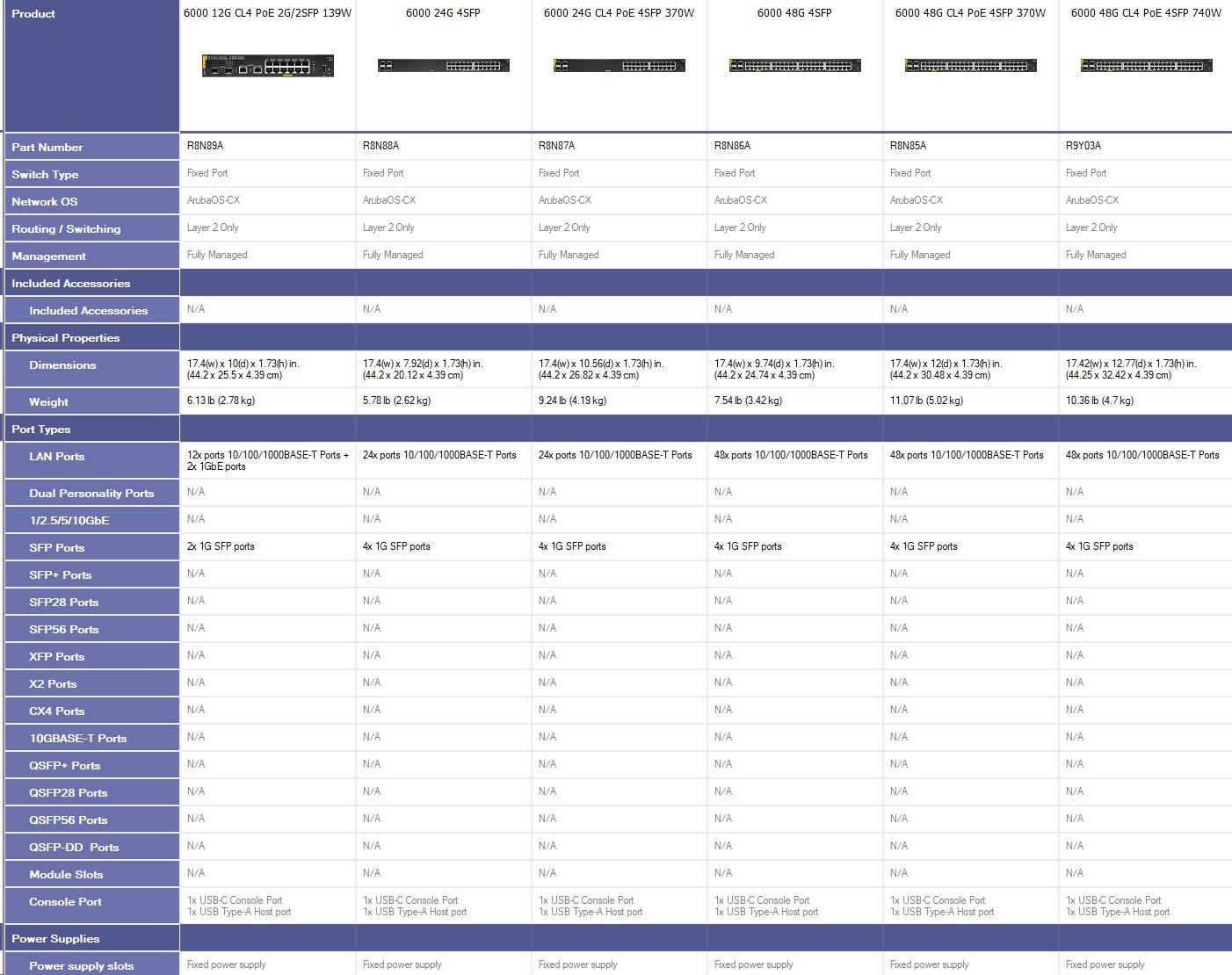 HPE Aruba Networking CX 6000 48G Class4 PoE 4SFP 370W Switch R8N85A RENEW